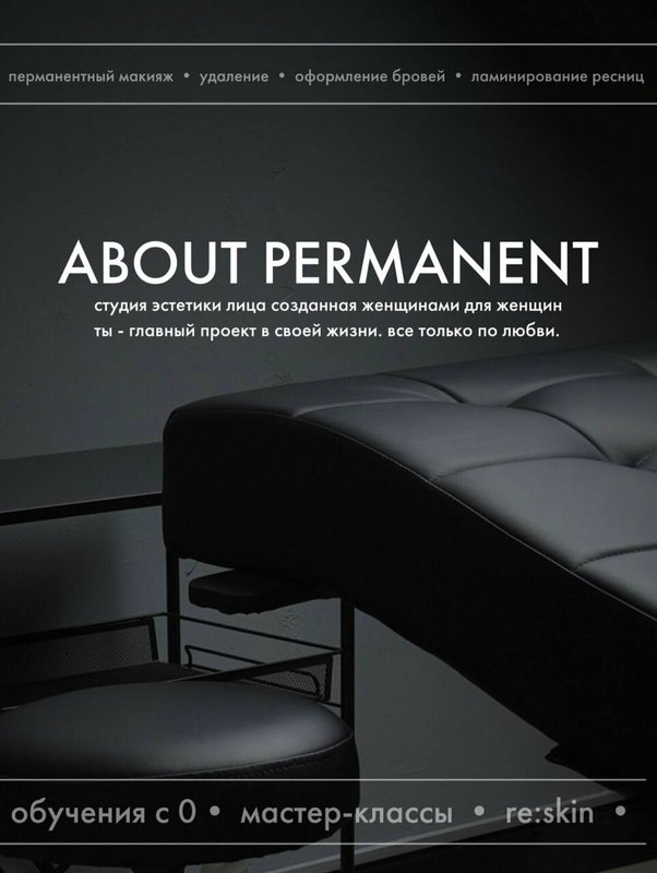 Чем порадовать себя в конце тяжелого рабочего дня или дождавшись выходных после напряженной недели? Посвятить пару часов заботе о своей внешности и самочувствии - один из лучших вариантов отдохнуть и расслабиться. В этом вам с радостью помогут специалисты студии перманентного макияжа About Permanent. Благодаря их безупречному профессионализму и личному отношению к каждому посетителю вы выйдете отсюда в самых лучших чувствах, и хорошее настроение останется с вами надолго.